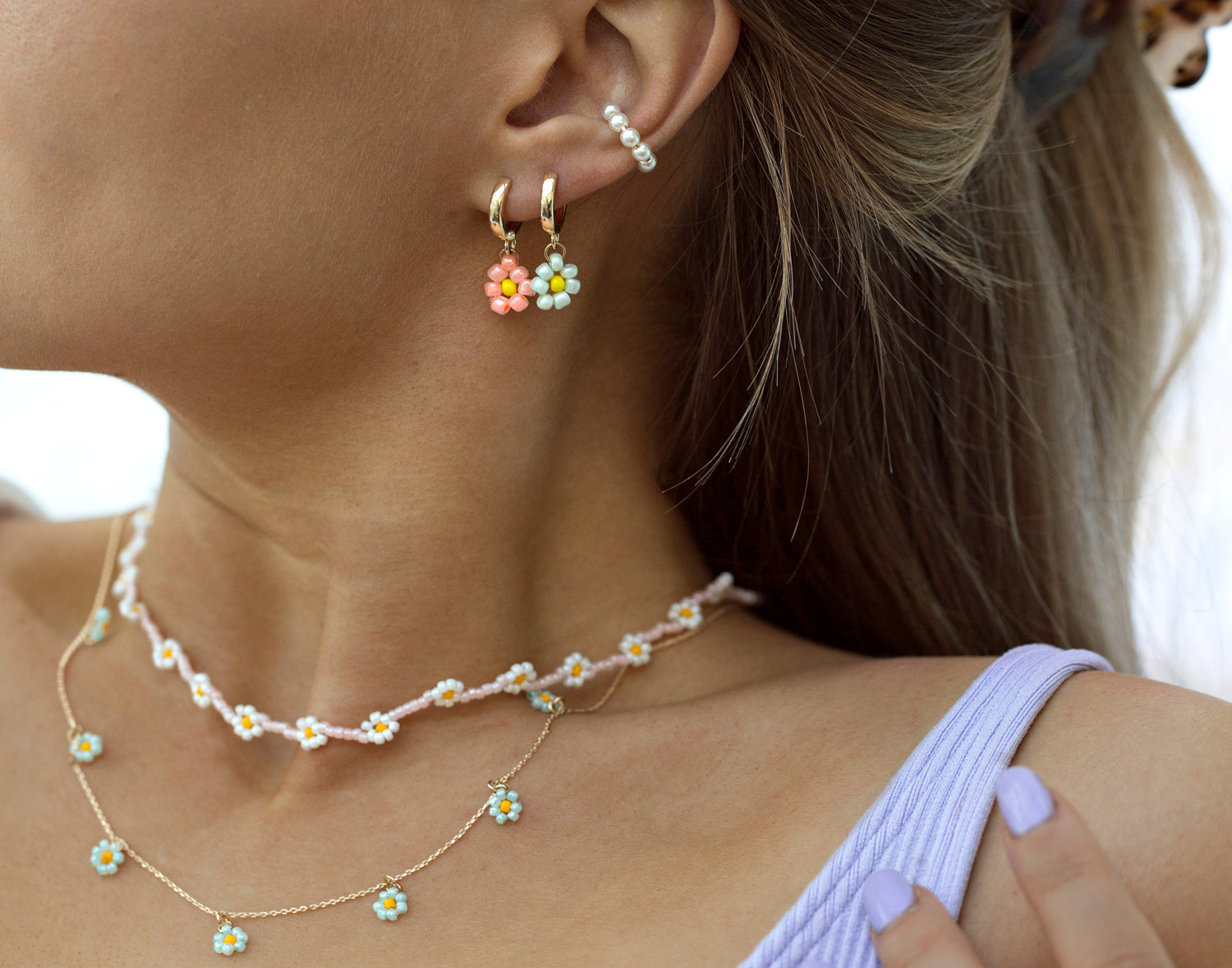これらのパステル デイジー ビーズ ジュエリーは、あなたの夏の装いに華やかさを添えます。