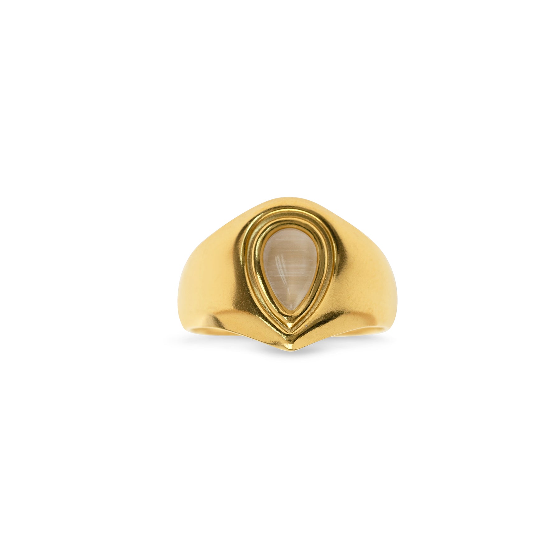 このストーンリングは自然なエレガンスを持っています。滑らかな石のインレイが特徴で、このステンレススチール製リングは日常使いに適した耐水性と変色防止機能があります。18kゴールドでメッキされており、贅沢な感触を提供します。