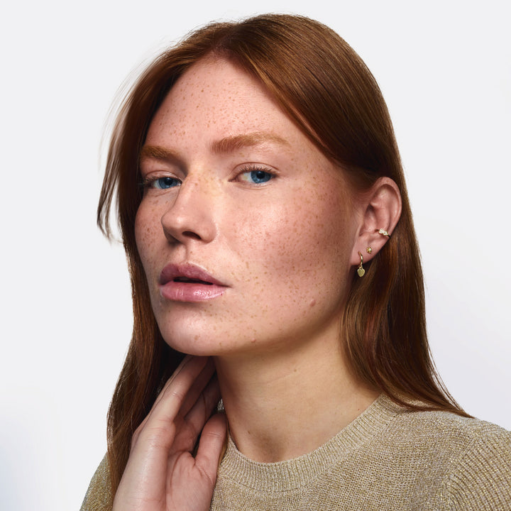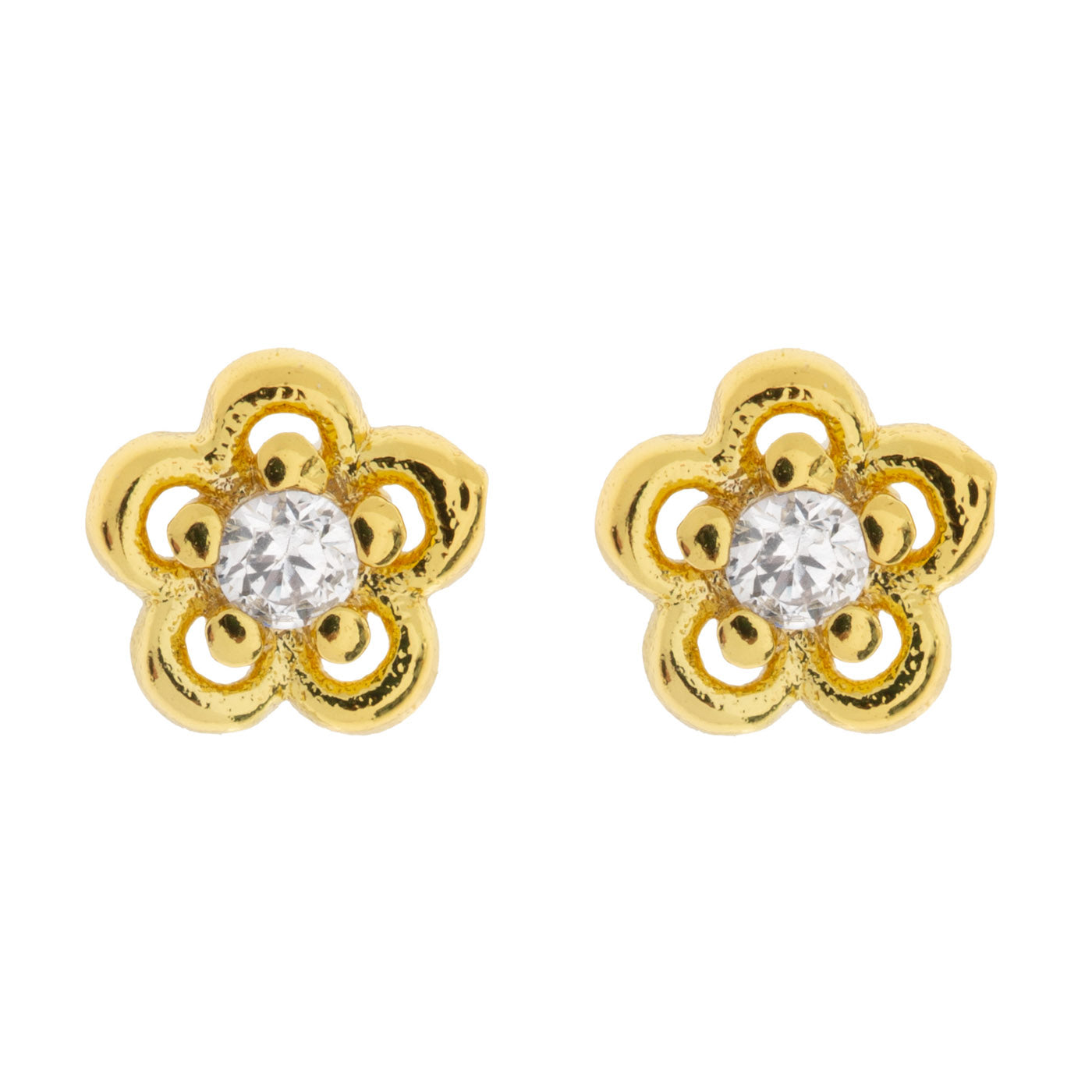 夢のような耳元の組み合わせを作るのに最適なスタッドピアス。中央にキュービックジルコニアが輝くキュートなミニフラワーが、あなたの装いをワンランクアップさせてくれます。他のスタイルと簡単に組み合わせられます。
