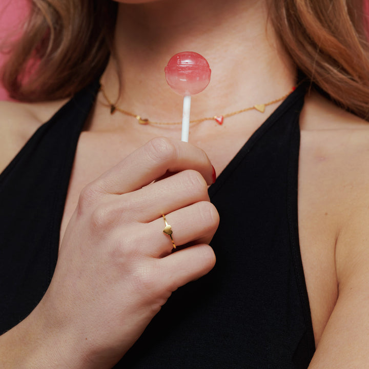 Delicate but dangerous, this dainty heart ring is crafted from durable stainless steel, making it tarnish resistant, water resistant and perfect for everyday wear. Adjustable to fit any finger, it seamlessly transitions between moods – from soft and sweet to bold and unstoppable. Whether you wear it solo for a minimalist vibe or stack it with your favourites for maximum impact, this ring is the ultimate versatile accessory. Add it to your vibe check – it’s guaranteed to pass with flying colours. Wear it with our matching earrings Stina - Dainty Heart Stud Earrings Stainless Steel