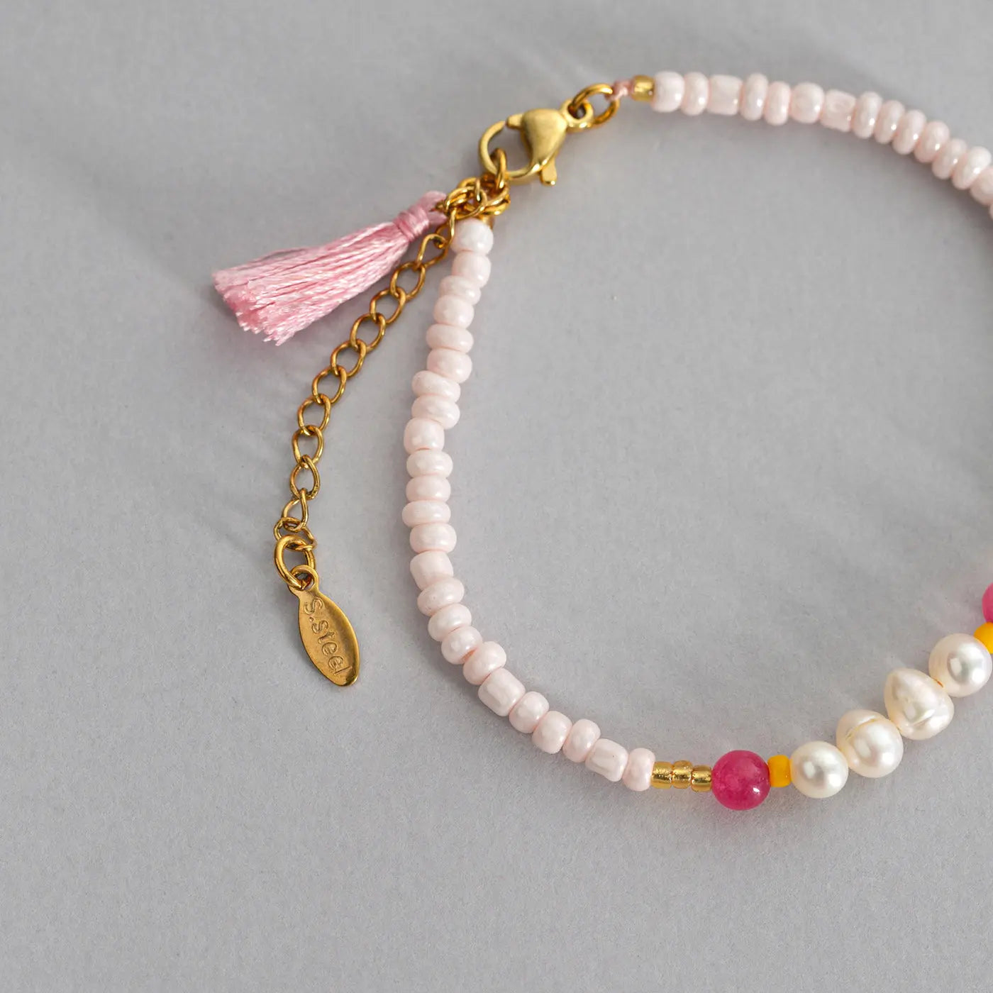 Bluma - Pearl Bead Pink Tassle Bracelet  | Timi of Sweden