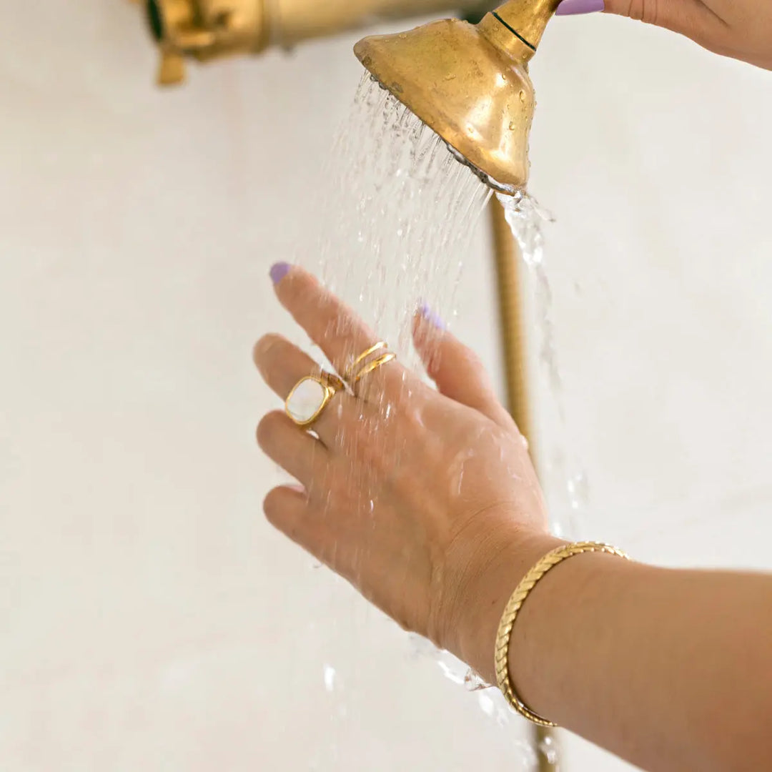 Our new stainless steel collection offers a range of total waterproof jewelry. Shower, swim and exercise without tarnishing your fave pieces. This summer is all about layering, and this bangle is a must have. They braided details and the soft golden finish makes this bracelet a must have!