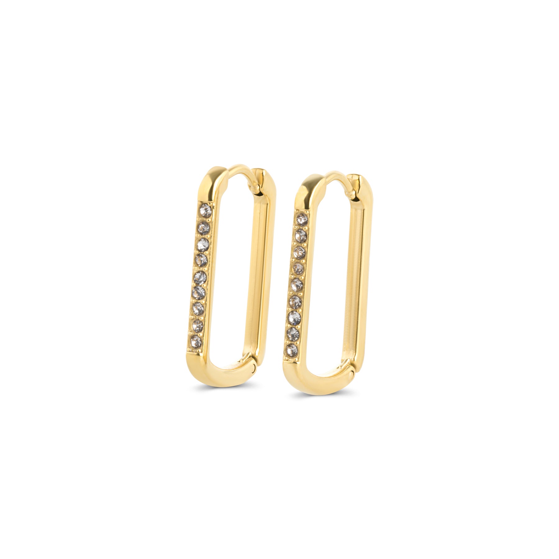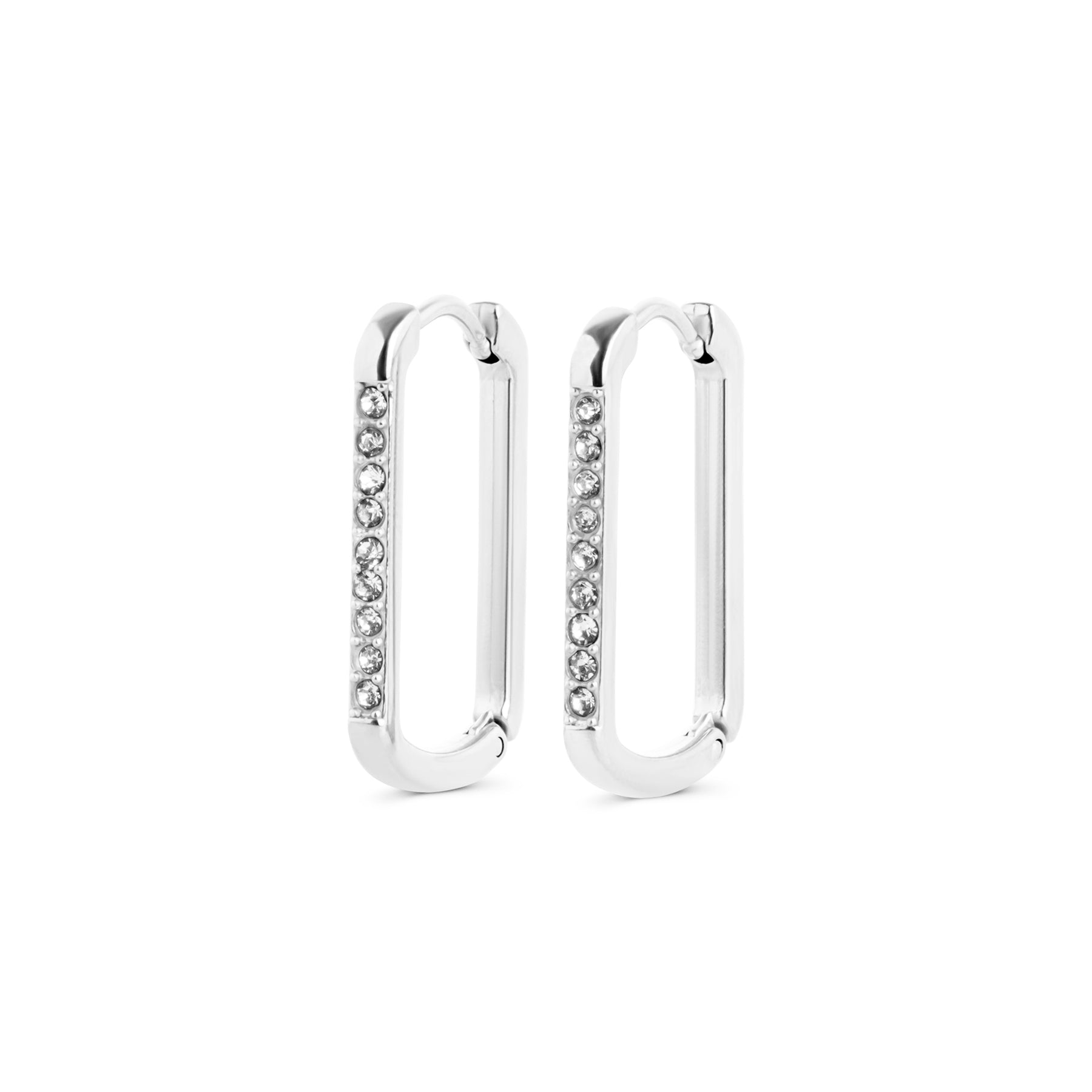 Crystal hoops in a beautiful rectangular shape. Crafted in waterproof stainless steel.