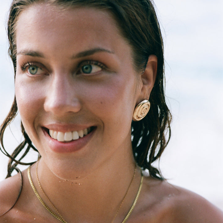 Bring those beachy vibes wherever you go with these shell earrings. These aren't your basic studs – they're a subtle nod to the ocean, crafted in long lasting stainless steel. Perfect for adding a touch of effortless cool to your everyday look or dressing up for a night out. And yeah, you guessed it – they're water resistant, so no stress if you get caught in the rain or decide to take a dip. Keep it chill, keep it stylish.