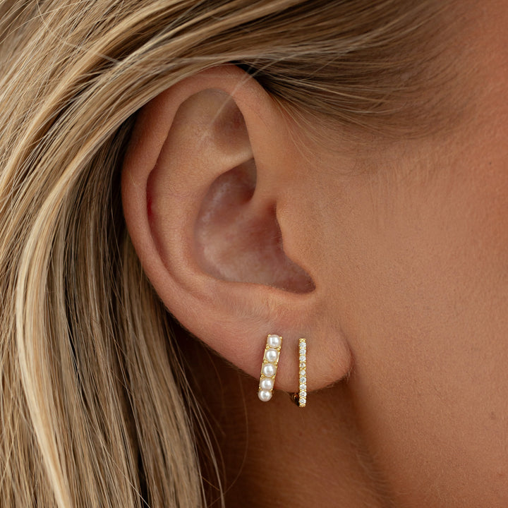 Classic studs with hoops and pearls that combine timeless elegance with modern simplicity. These sleek hoop earrings, paired with lustrous pearls, add a sophisticated touch suitable for any occasion. With their comfortable fit and minimalist design, these stud earrings are a versatile accessory that elevates any outfit. A must-have for those seeking stylish and classic earrings. Plated in 18k gold for a shiny, polished and luxurious finish.