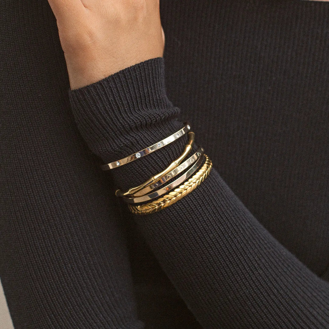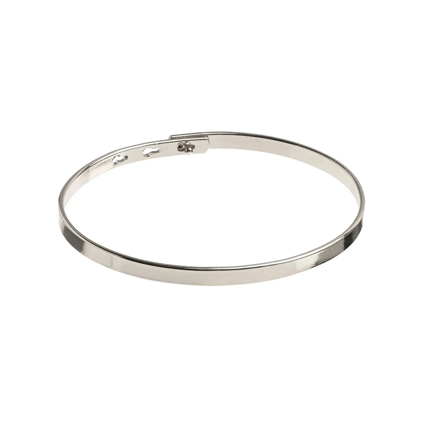 エッセンシャル バングルは、テキストのないシンプルで洗練されたシルバー バングル ブレスレットです。今シーズンの最大のトレンドの 1 つは、あらゆる形や形のバングルを、できればたくさん着用することです。このブレスレットを当社の他のバングルと組み合わせて、IT を手に入れましょう。