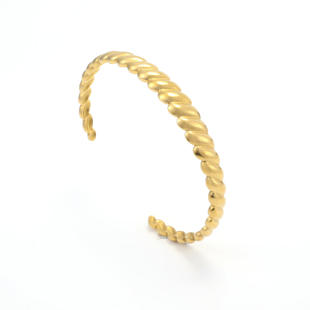 Isabelは単なるバングルブレスレットではなく、ひとつの主張です。大胆なクロワッサンにインスパイアされた曲線が特徴のこのステンレススチール製ブレスレットは、どんな服装にも即座にエッジを加えます。耐水性があり、重ね付けにも適していて、目を引かずにはいられません。単独で着けても重ねても、Isabelはブランチからダンスフロアまで視線を集めるように作られています。