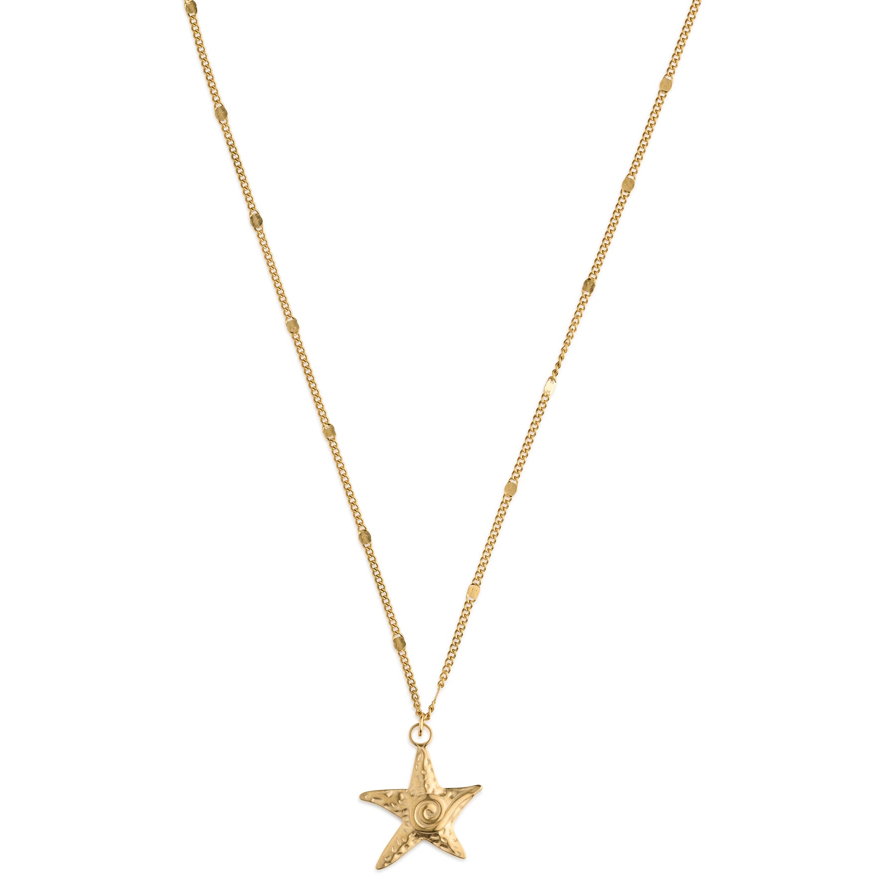 海の黄金の輝き。この揺れるヒトデのネックレスは繊細で夢のよう、海を愛する人にぴったりです。ゴールドメッキのステンレススチール製で、このwater resistantネックレスは手軽にコースタルシックを楽しむための必須アイテムです。