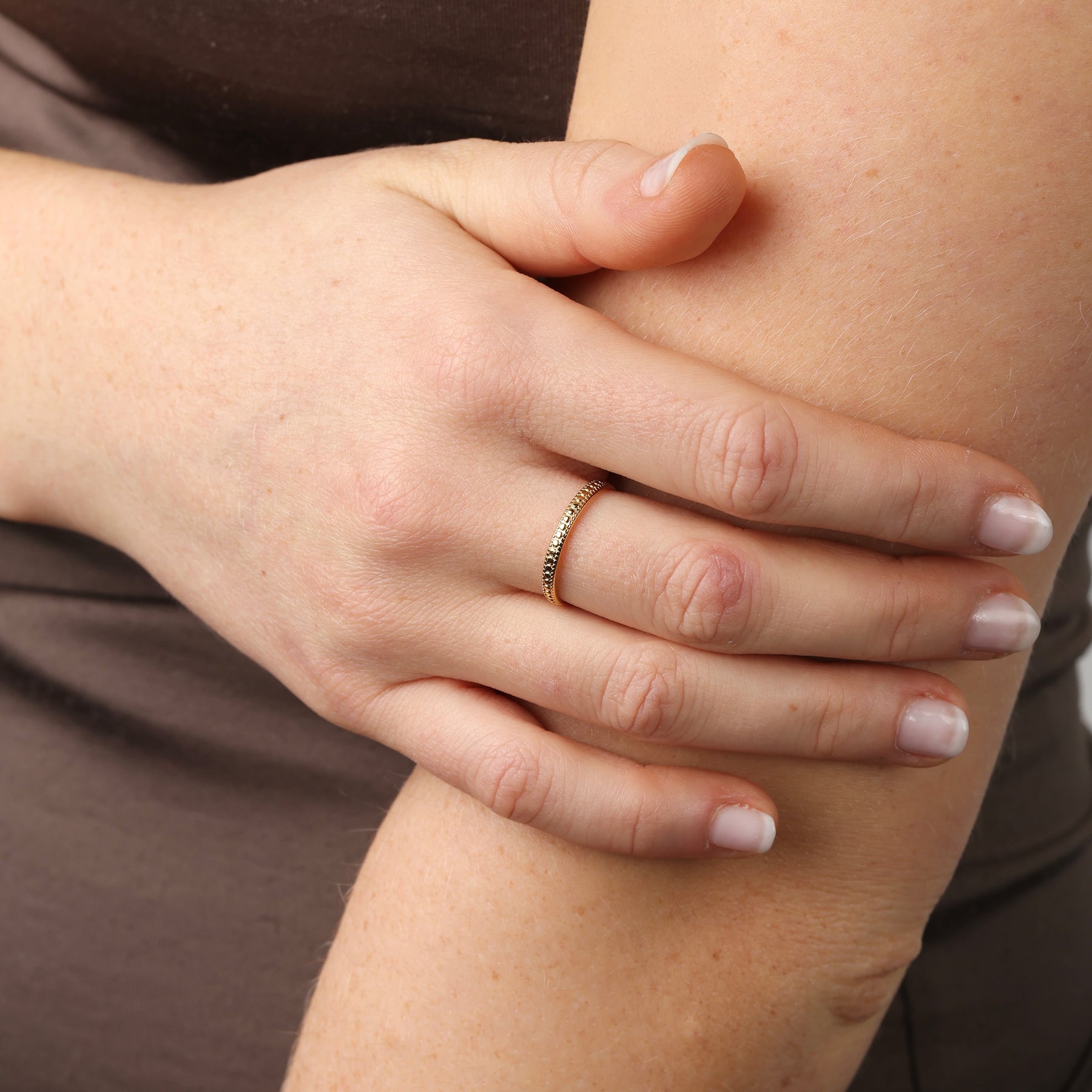ミニマルなルックのためにデザインされたスリムでエレガントなステンレススチールのリング。