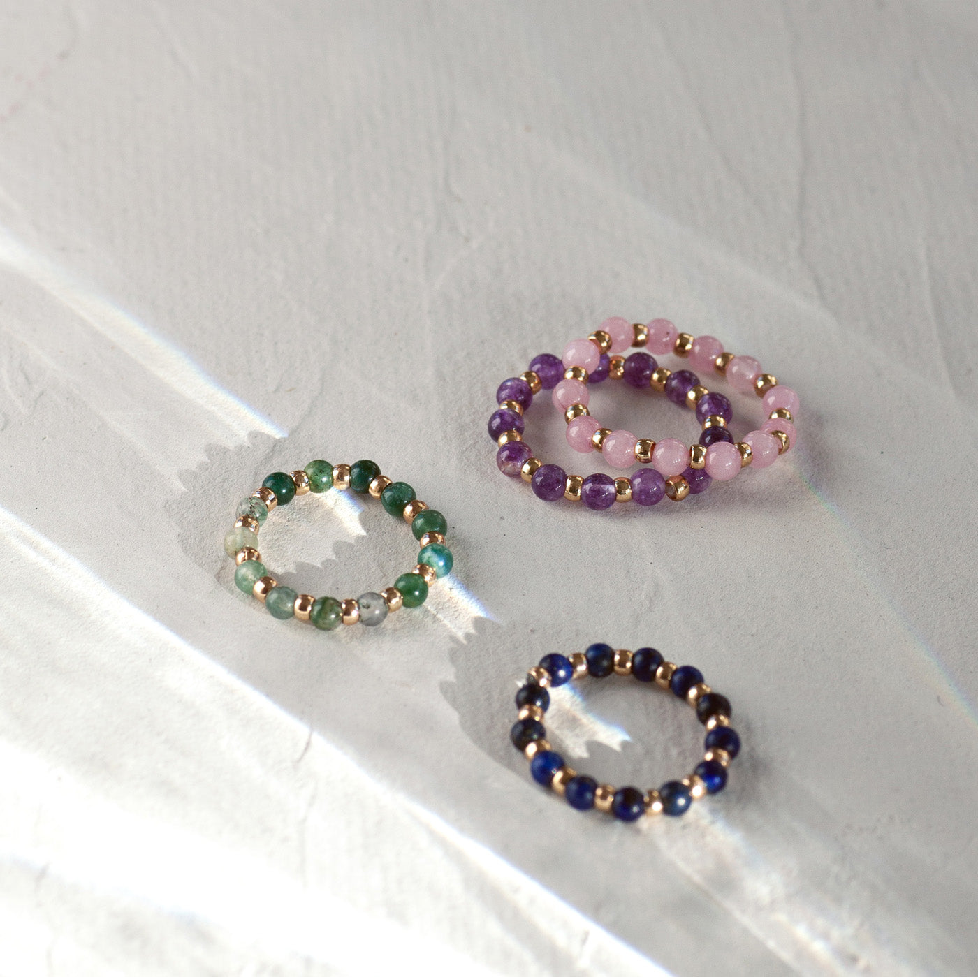 - リングは伸縮性のある糸を使用しているため、調節可能です