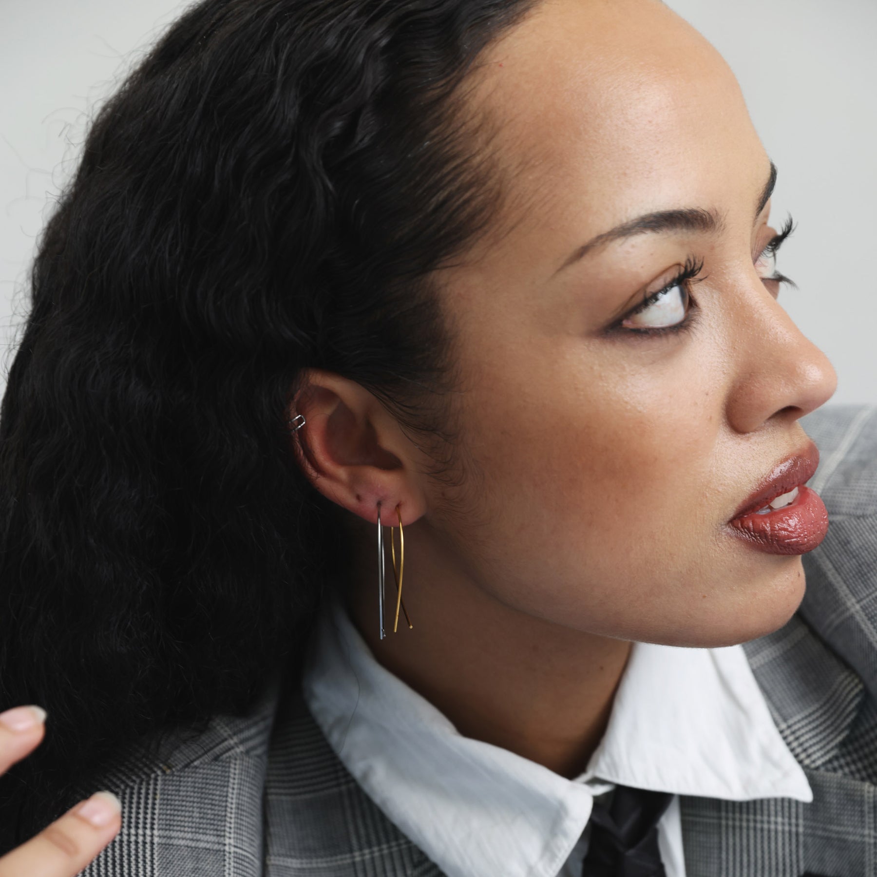 防水ステンレススチールで作られたワイヤーループイヤリングで、モダンな印象を演出します。